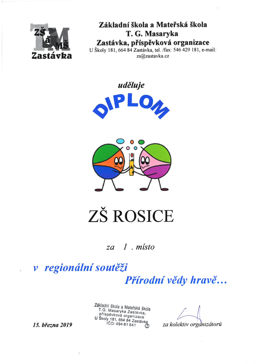 Dne 15. března se naši žáci zúčastnili regionální soutěže Přírodní vědy hravě, kterou pořádala Základní škola a Mateřská škola T. G. Masaryka Zastávka.