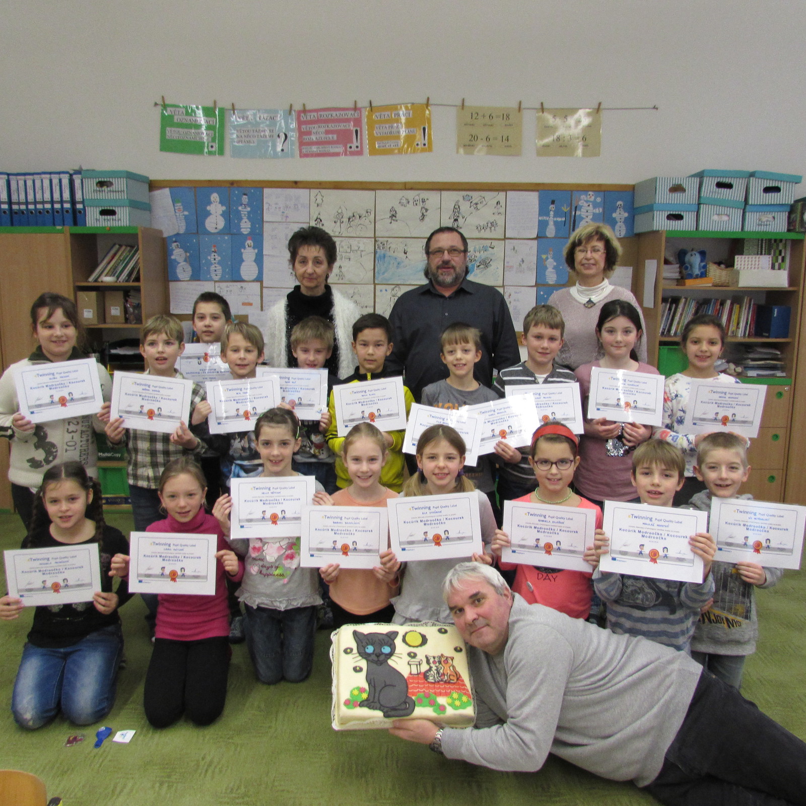 V letošním školním roce třída 2.A spolupracovala se slovenskými kamarády z Humenného na projektu inspirovaném knihou Jiřího Koláře - Z deníku kocoura Modroočka. Projekt byl zaměřen především na čtení s porozuměním, porozumění slovenskému jazyku a navázání vztahů se slovenskou školou. V rámci projektu proběhla Kočičí výstava, na které se podíleli žáci téměř ze všech ročníků naší školy.