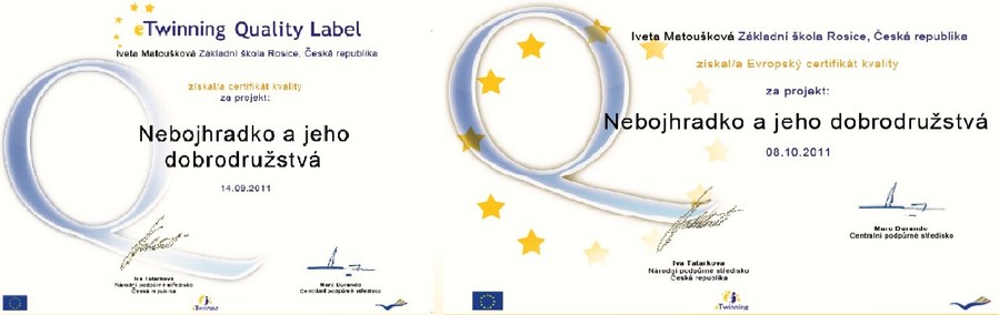 V říjnu tohoto školního roku získala třída 3.A /vloni 2.A/ český i evropský certifikát kvality za svůj mezinárodní projekt Noc v knihovně.
