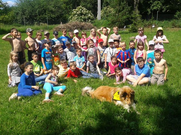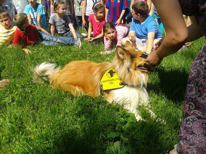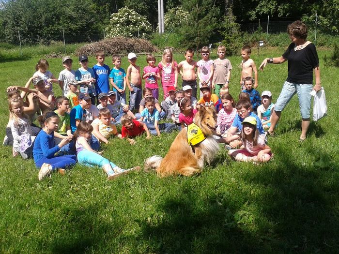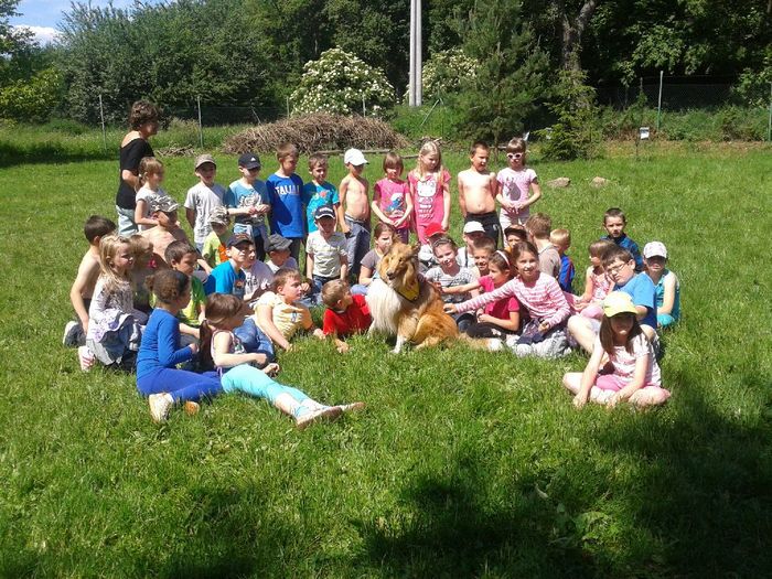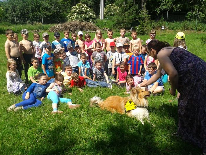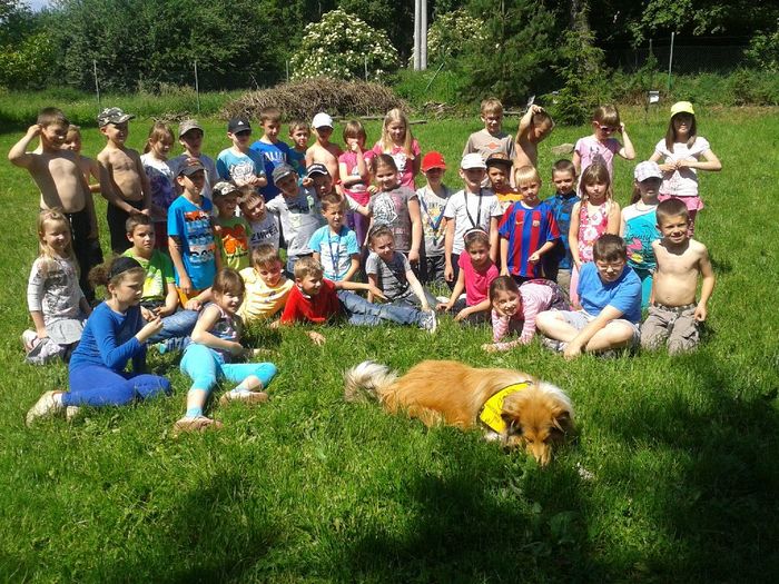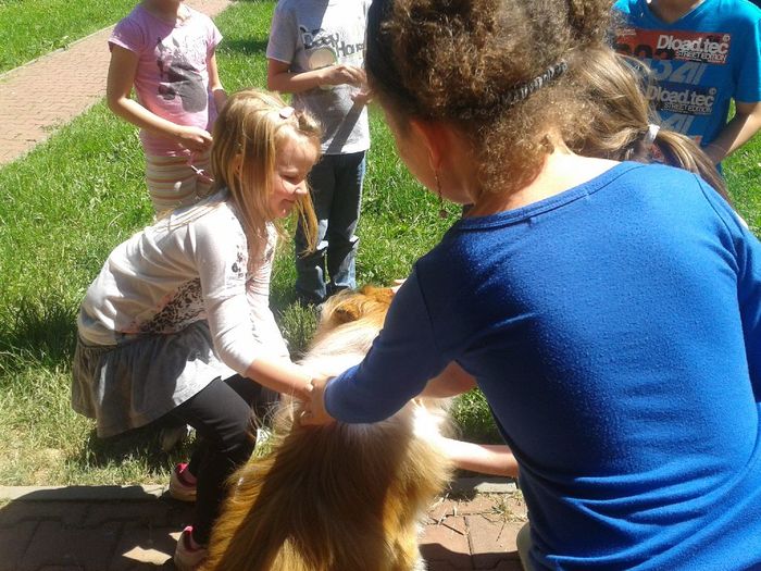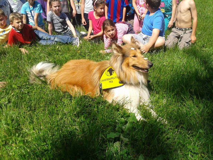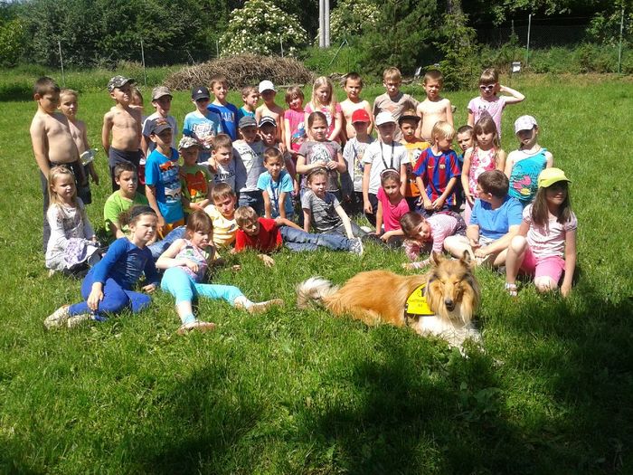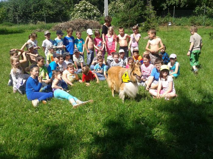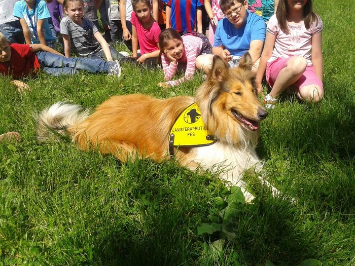 Úvod > Škola > Školní družina > Fotoalbum > Na školní zahradě s canisterapeutickým psem 6. 6. 14