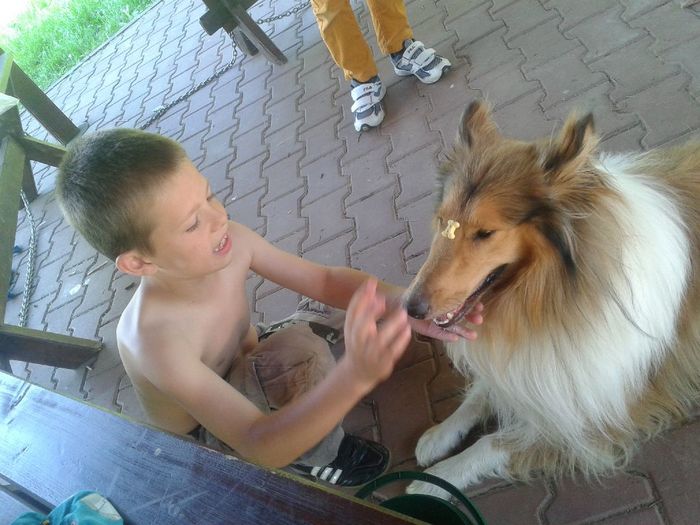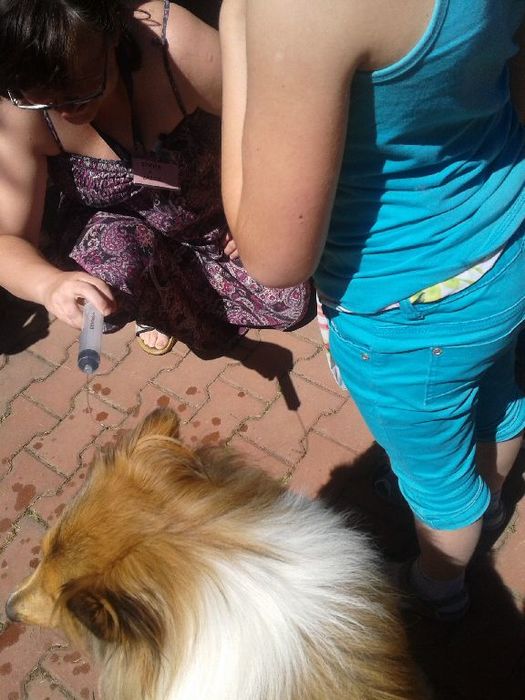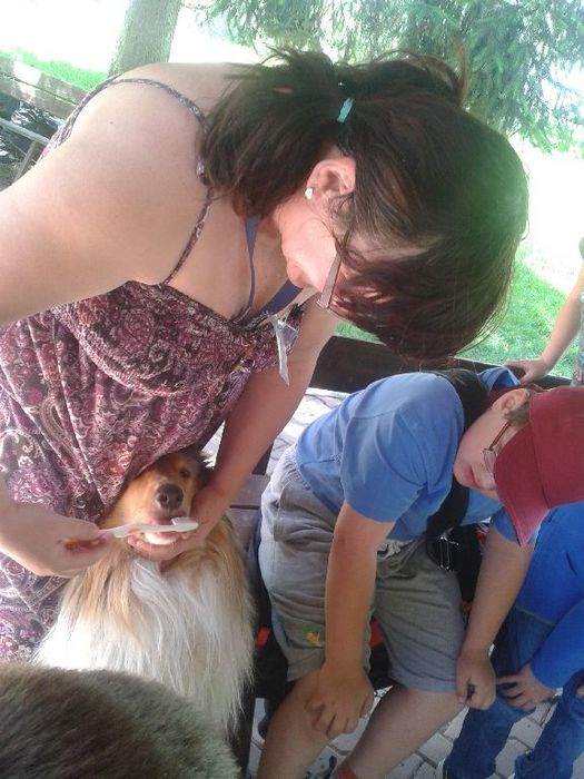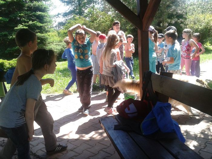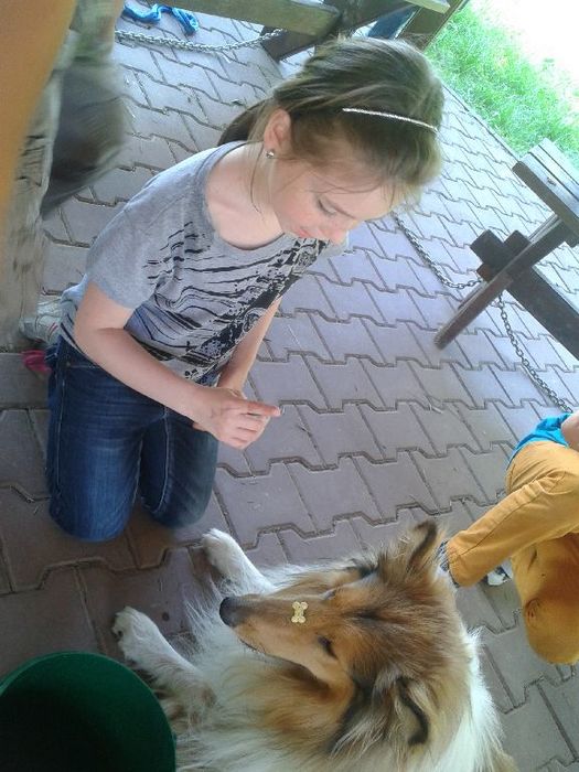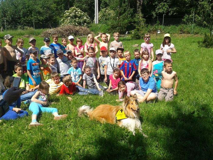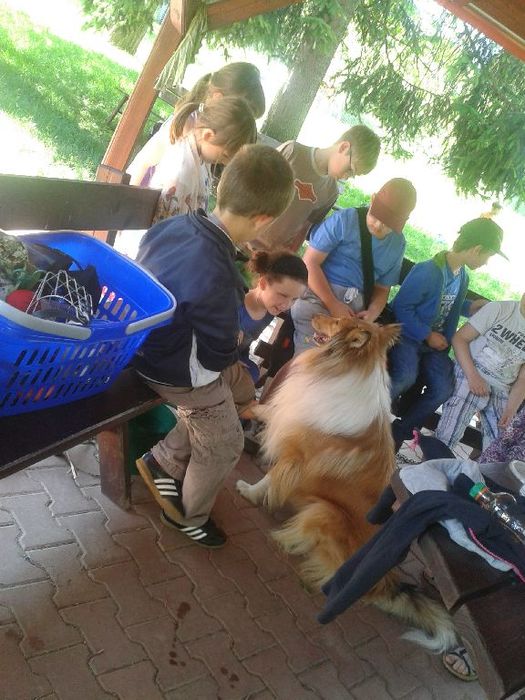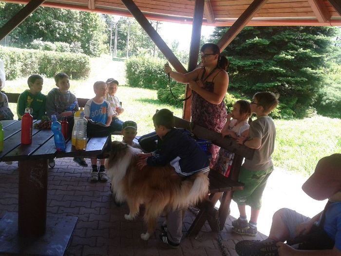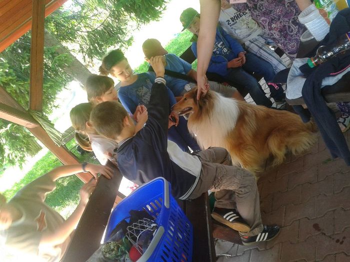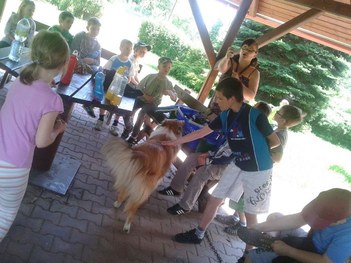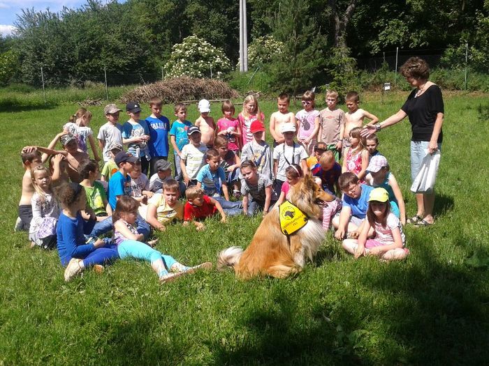 Úvod > Škola > Školní družina > Fotoalbum > Na školní zahradě s canisterapeutickým psem 6. 6. 14