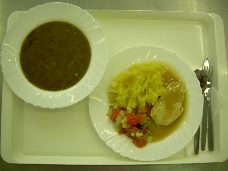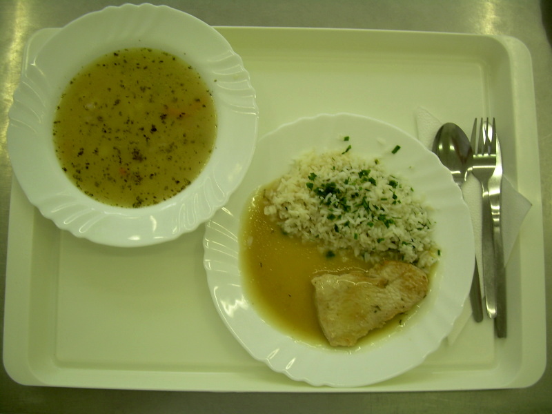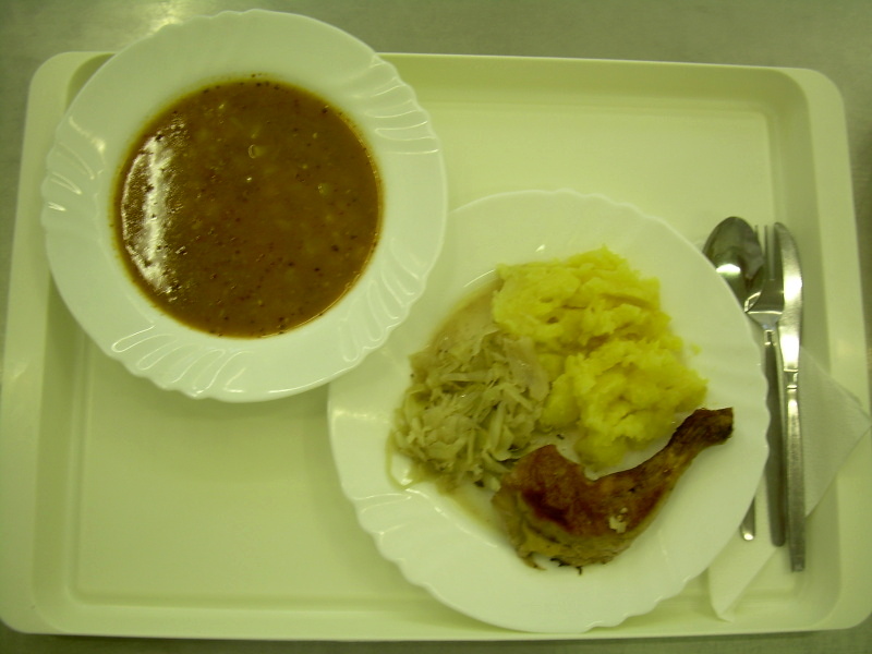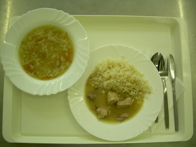 Vepřová kýta na houbách, rýže, kompot