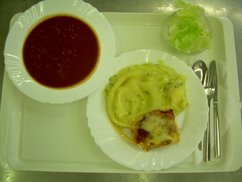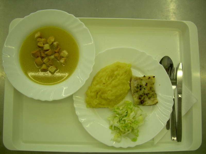 Treska s ajvarem a sýrem, bramborová kaše, čínské zelí